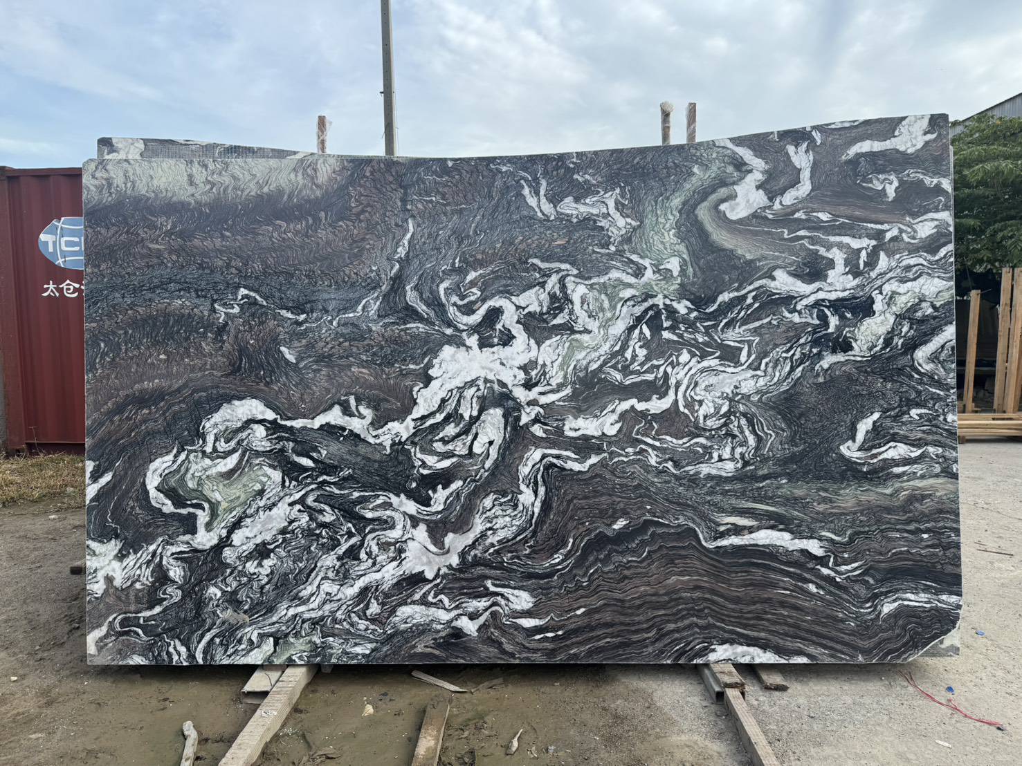 ลักษณะหิน: หินอ่อนสีดำ ริ้วคลื่นสีขาวขนาดใหญ่