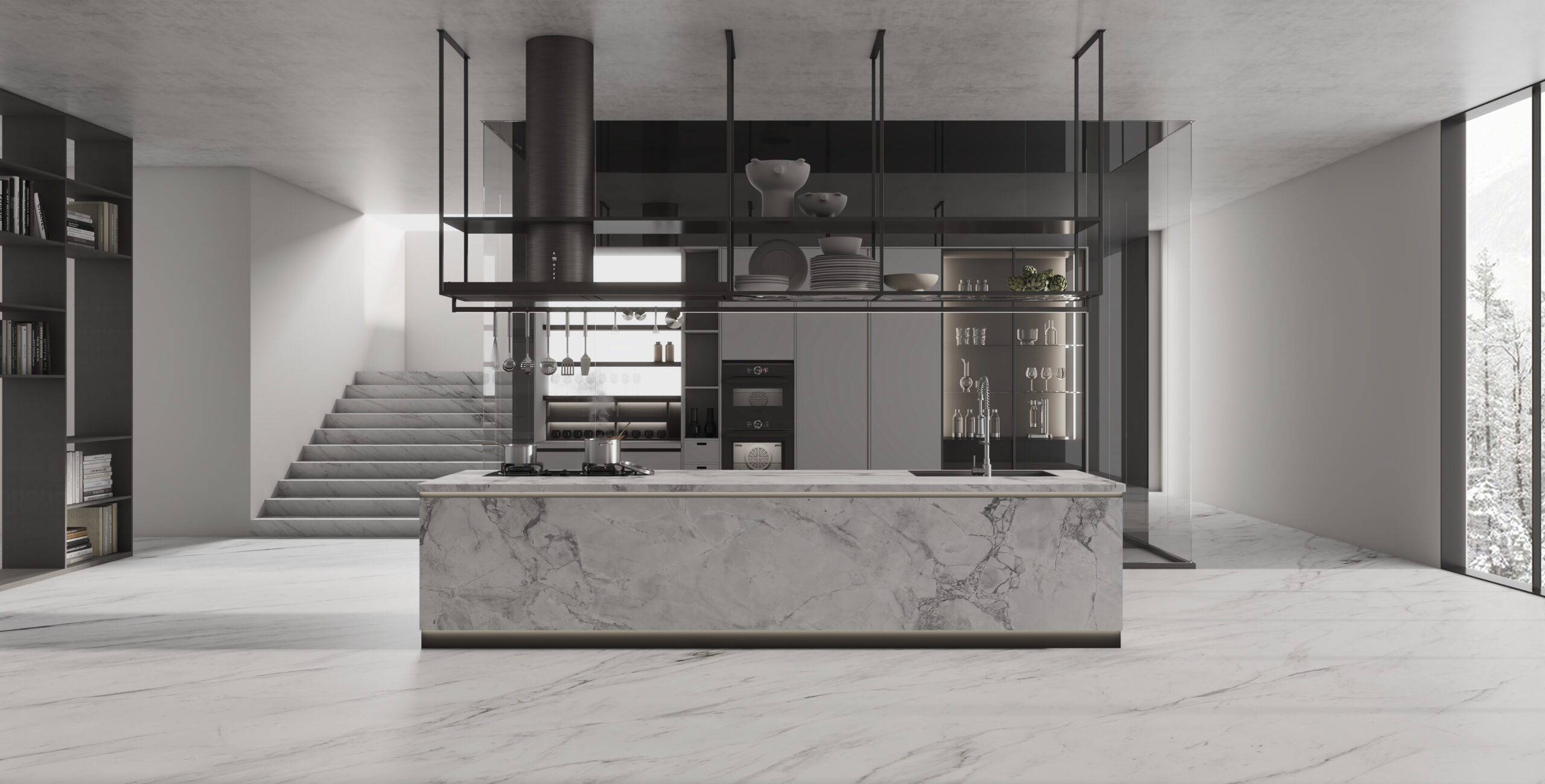 เรียบหรูระดับไฮเอนด์ ถือว่าเป็นประเภทของหินอ่อนที่หลายคนชื่นชอบ เพราะมีความหรูหรา ซึ่งจะมีลักษณะ เป็นพื้นสีขาวนวล พร้อมเส้นลายเทาเข้มหนาเด่น มีสไตล์ Luxury Modern, Minimal High-Endถือว่าสามารถใช้ได้ดีกับเคาน์เตอร์ครัว, ห้องน้ำ, พื้นห้องรับแขก มันจะมีข้อดีตรงที่มีความหรูหรามีความเป็นเอกลักษณ์ เหมาะกับบ้านที่เน้นภาพลักษณ์ที่หรูหราและสวยงาม